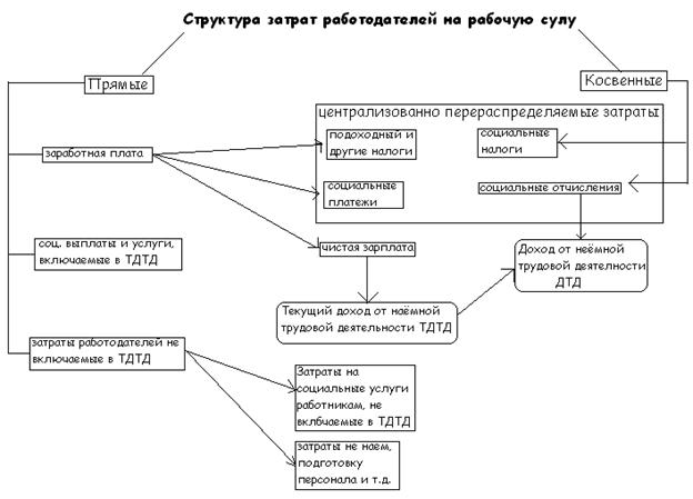 Основная часть чистых прямых затрат (ЧП ЗРС) идет на формирование ТДТД работников. Тем не менее необходимо учитывать, что как в отечественной, так и в международной практике существуют определенные группы затрат (конкретный их перечень еще нуждается в отработке и согласовании), которые, как правило, не включаются в доходы работников и, что немаловажно, не облагаются соответствующими налогами и отчислениями.