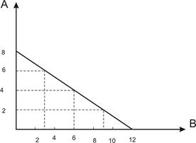 Допустим, что благо А стоит 1,5 ден. ед., а благо В – 1 ден. ед. Потребитель при доходе 12 ден. ед. может приобрести следующие комбинации благ А и В:
