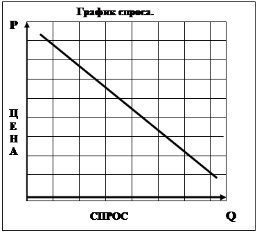 Обратную зависимость между ценой продукта и величиной спроса можно изобразить в виде простого двухмерного графика, показывающего величину спроса на горизонтальной оси, а цену на вертикальной оси.