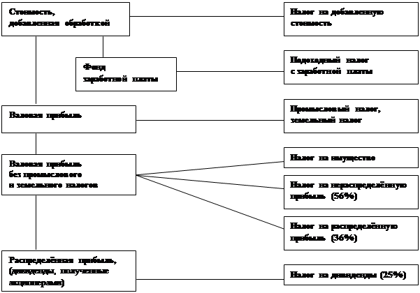 Рис. 2 Налогообложение стоимости, добавленной обработкой (в ФРГ)