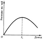 Рис. 15. Чай - нормальный товар при доходе меньшем, чем I1, низшее благо при доходе выше I1.