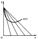 Если изменение дохода при постоянных ценах выражалось в параллельных сдвигах бюджетной линии, то изменение цены на один из товаров при постоянстве дохода и цены другого товара будет выглядеть как поворот бюджетной линии (рис. 16). Таким образом, каждому значению цены товара Х будет соответствовать своя бюджетная линия, а каждой бюджетной линии - своя точка касания с какой-нибудь кривой безразличия. Соединив все эти точки выбора, как в предыдущем разделе, мы получим линию цена-потребление товара X.