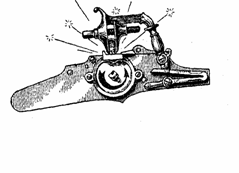 И только в начале 19 в., когда появились и быстро завоевали признание капсюльные (точнее, ударно-капсюльные) замки (рис. 3), для пистолетов и для всего огнестрельного оружия наступила пора бурного развития. Применение ударного состава для воспламенения заряда было запатентовано в 1807 г. англичанином Форсайтом. Важными предпосылками для успешного развития пистолетов кроме капсюлей с ударно-воспламеняющими составами явились также нарезной ствол, вращающийся барабан и вставляемая с казны зарядная камора. Эти изобретения были сделаны до появления ударных капсюлей, но тогда они как отдельные новшества не могли дать того эффекта, который оказался возможным при сочетании их с новой идеей — идеей капсюльного воспламенения.