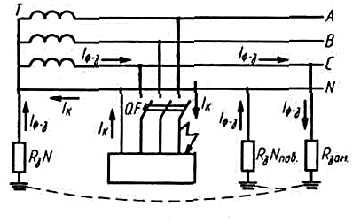 безопасного значения при замыкании фазного проводника на землю, при этом создается путь для тока Iф-з (рис. 5).
