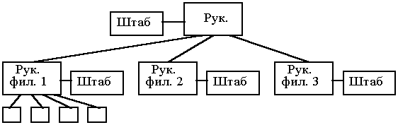 Дивизиональная (филиальная) структура изображена на рис.1.1.4 Дивизионы (филиалы) выделяются или по области деятельности, или географически.