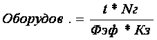 Количество оборудования необходимого для выполнения заказа расчитывается по формуле:
