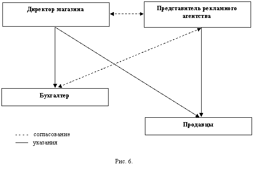 3. Инструктаж производился на совещании, в ходе которого все получили ясное представление о том, что от них требуется. Продавцы ведут наблюдение и предоставляют отчет. Форма отчета согласуется менеджером с представителем рекламного агентства. Определение методов работы, составление анкет для опроса клиентов находятся в компетенции продавцов. На основании полученных данных представитель рекламного агентства предлагает формы рекламы, оценивает возможные затраты, которые согласовываются с запланированным бюджетом. Бухгалтер оплачивает услуги рекламного агентства.