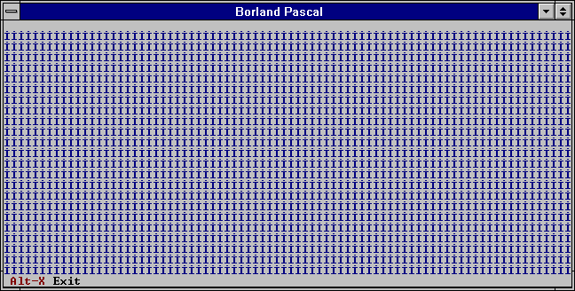 В этой программе объявлено использование стандартного для Turbo Vision модуля APP (от Application - прикладная программа). Такое объявление открыло доступ к мощным возможностям Turbo Vision. Затем объявили экземпляр объекта TApplication, т.е. объединение данных и методов обработки этик данных (процедур, функций, конструкторов, деструкторов). В объекте TApplication предусмотрены методы INIT, RUN и DONE. Вызов этих методов и составляет исполняемую часть программы. Если запустить эту программу, то на экран появится изображение (см. рис 1) :