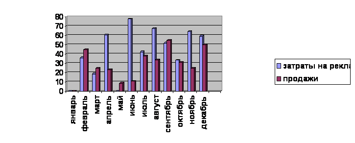 Затраты на рекламу по месяцам (х100 000)