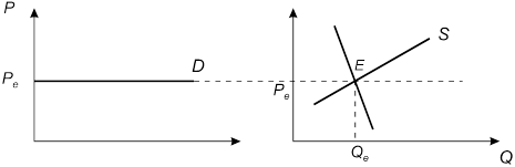 Рис. 1 иллюстрирует, что при совершенной конкуренции предложение поддерживается на равновесном уровне (Pe). Иными словами, любой объем выпуска может быть распродан по равновесной рыночной цене. Это исключает инфляцию, безработицу, перепроизводство и другие явления экономического неравновесия.