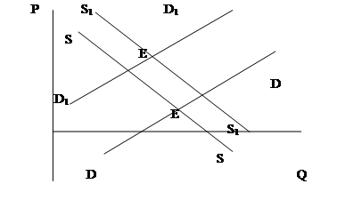 Таким образом, в условиях дефицитной рыночной экономики инфляция предложения как бы вторична по сравнению с инфляцией спроса. Рост издержек предприятий смещает линию предложения вверх, и цена равновесия растет; но главная составляющая роста цены даже в такой ситуации неизменна -- это дефицитный, накапливающийся спрос.