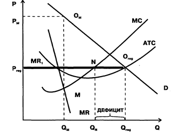 На рис. 2.2 видно, что и этот подход к регулированию решает задачу прироста производства (Qreg > QM ) и понижения цены (Рreg < РM).