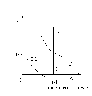 Если изобразить на графике кривую предложения земли, то она будет иметь вид вертикальной линии. Можно повысить производительность земли, улучшить ее качество. Можно повысить рыночный уровень ренты как платы за землю или снизить этот уровень до минимума, но количество совокупного предложения этого фактора производства в каждый фиксированный момент времени увеличить невозможно. Чистая экономическая рента определяется соотношением спроса и предложения земли на рынках.