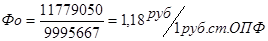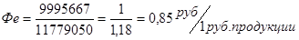 за текущий год средне-годовая стоимость О.Ф составила – 9995667 руб., стоимость продукции - 4133*2850=11779050 р.