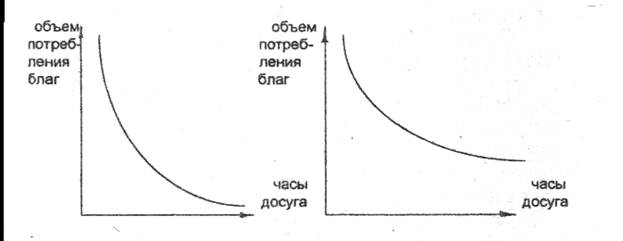 Будем считать, что все основные свойства кривых безразличия имеют место и для предпочтений в отношении дохода и досуга. В частности, каждая кривая обращена выпуклостью к началу координат. Если у человека мало досуга, то норма замещения досуга доходом относительно велика: сокращение досуга на один час в сутки требует для сохранения уровня удовлетворения значительной прибавки дохода. В левой части карты безразличия кривые имеют крутой наклон. Если же у человека досуга много, то он ценит дополнительный час ниже, и по мере движения вдоль кривой безразличия слева направо наклон ее снижается.