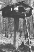 Отголоском самой глубокой древности до сих пор стоят в северных лесах "охотничьи лабазы". Это маленькие срубики, поставленные на один или два столба /часто просто на срубленный ствол дерева/. Такие лабазы до сих пор служат охотникам для сохранения продуктов и добычи. Однако считается, что первоначально их применяли для захоронения /сравните абаз с образом "избушки на курьих ножках"/