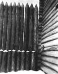 Тын - простейший тип деревянной крепостной стены и, пожалуй, наиболее древний. Тыновые стены окружали город, тын устраивался во рву и на валах. В зависимости от постановки тына изменялась и его высота. Естественно, что наиболее высокой стена была в том случае, если ставилась она на ровной местности, и наименьшей высоты был тын, поставленный на высоком, с крутыми откосами, земляном валу. Здесь он скорее играл роль бруствера, нежели стены в значении ограждения крепости. Стрельба при таком устройстве стены производилась поверх тына.