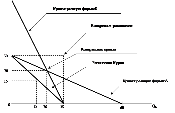Как видим, при договорном равновесии обе фирмы будут производить меньше и получать более высокие прибыли, чем при равновесии Курно.