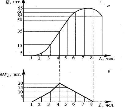 Q - объем выпуска; L - численность рабочих; ML - предельный продукт труда