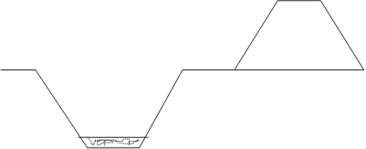 Поскольку высота отвала должна быть на 0.5 м меньше максимальной высоты выгрузки, что в данном случае составляет 5 м, а при треугольной форме отвала высота была бы h = Ö42 = 6.5 м, то форма отвала будет трапециевидной.