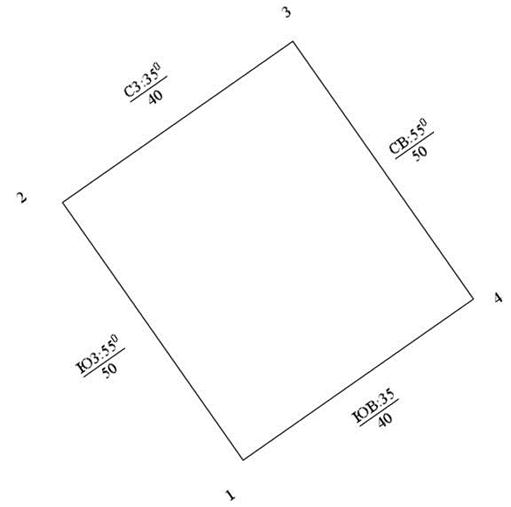 Рисунок 4. Абрис пробной площади №2, квартал 35 выдел 40, Мало-Кичмайское лесничество
