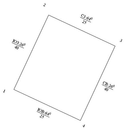 Рисунок 2. Абрис пробной площади №1, квартал 30 выдел 40, Мало-Кичмайское лесничество