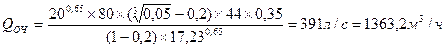 QТ = [5,5/(10 + 0,29)] ∙ 20 ∙ 0,5 ∙ 44 = 844 м3/ч