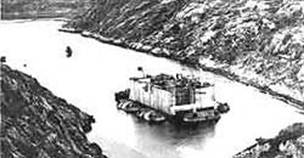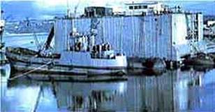 Наплавное здание Кислогубской ПЭС перед выводом на перегон |