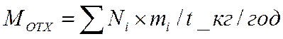 М = VM х рM х Н, кг/год