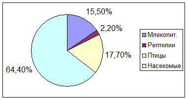 Соотношение классов, входящих в состав животного мира данной экосистемы можно представить в виде графика: