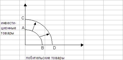 Общее представление о взаимосвязанных всех этих факторов может дать кривая производственных возможностей (рис.1).
