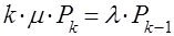 Если в момент поступления требования в очереди уже находились k-m требований, то, поскольку обслуживание происходит в порядке очередности, вновь поступившее требование должно ожидать, когда будут обслужены k-m+1 требований. Пусть