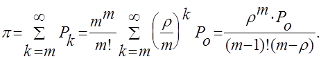вероятность неравенства, указанного в скобке при условии, что в момент поступления требования, для которого подсчитывается длительность ожидания, в очереди уже находится k требований. В силу формулы полной вероятности имеем равенство