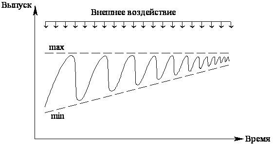Колебания в деятельности как бы заключаются в своеобразный "коридор", который постепенно сужается, снижая амплитуду колебаний и стимулируя подъем в деятельности предприятия (рисунок 2).