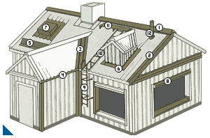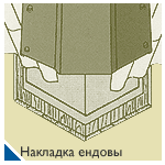 Монтаж панелей черепицы начинают с торца двускатной или с точки соприкосновения скатов вальмовой крыши. При укладке необходимо следить, чтобы следующий лист перекрыл антикапиллярный паз предыдущего. Панели укладываются перпендикулярно к карнизу с выступом 50 мм за карниз.