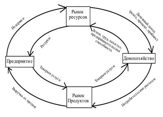Рисунок 1 - Модель кругооборота ресурсов, продукта и дохода