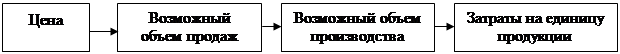 При рыночной организации сбыта продукции уровень цены определяет возможный объем продаж и соответственно – возможный масштаб производства. Между тем и экономическая теория, и бухгалтерский учет признают, что от масштаба производства прямо зависит величина удельных затрат на производство единицы продукции. При росте масштабов выпуска снижается сумма постоянных затрат, приходящаяся на одно изделие, и соответственно величина средних затрат на его выпуск.