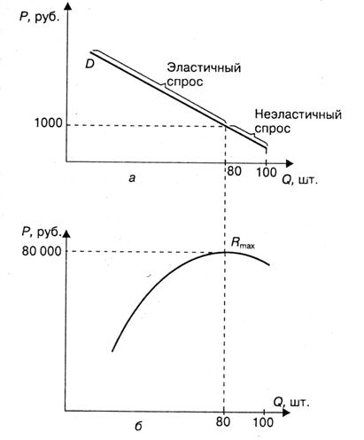 Рис. 5. Эластичность спроса (а) и изменение валовой выручки (б):