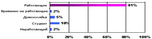Большинство посетителей ресторанов изучаемого сегмента — люди работающие. Чаще всего это специалисты с высшим образованием, каждый пятый посетитель — менеджер высшего звена, а каждый четвертый — служащий (рисунок 2.7).