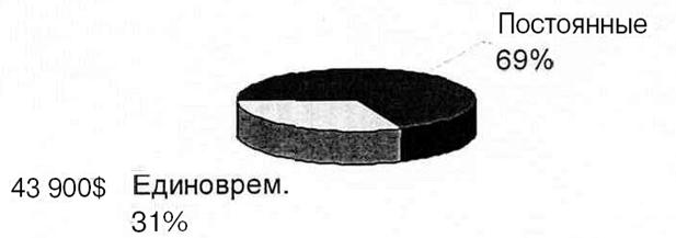Для осуществления проекта необходим кредит в размере 125 000 у.е. (под 15% годовых), собственные средства составляют 16 000 у.е Единовременные затраты: ремонт 9500 у.е. + оборудование 10 900 у.е. + внутреннее оформление 18 500 у.е. + презентация 5000 у.е. = 43 900 у.е.