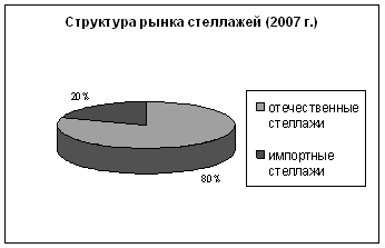 Рисунок Б.4 – Структура рынка стеллажей (2007 г.). Доли отечественной и импортной продукции