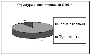 Рисунок Б.5 – Структура рынка стеллажей (2007 г.). Доли новой и б/у продукции