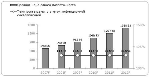 Рисунок Б.6 - Прогноз цены одного паллето-места с учетом инфляционной составляющей