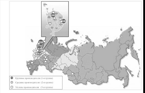 Рисунок Б.3 - Распределение производителей стеллажей на группы