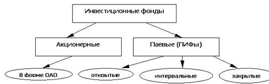 Инвестиционные фонды представляют собой акционерные общества открытого типа, деятельность их состоит в привлечении денежных средств за счет эмиссии акций и инвестирование их в ценные бумаги, банковские вклады и т.д. Это механизм, с помощью которого юридические и физические лица передают свободные денежные средства или актив профессиональным управляющим.