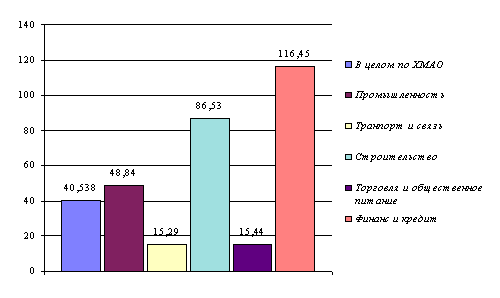 В Ханты-Мансийском автономном округе 44 % малых предприятий занято в отраслях строительства, услуг, сельского хозяйства, транспортировка связи и промышленности по состоянию на 01.01.03 года: в торговле - 36 %, в прочих - 20%, доля малых предприятий соответственно разделилась 44 %, 37 %, 19 % - по состоянию на 01.01.03 года.