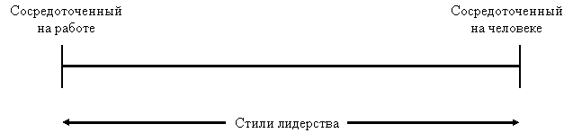 Рэнсис Лайкерт и его коллеги в Мичиганском университете разработали альтернативную систему, сравнивая группы с высокой производительностью труда и группы с низкой производительностью в различных организациях. Они считали, что разницу в производительности может объяснить стиль лидерства. Аналогично континууму по теориям “Х” и “Y” МакГрегора, руководители групп с высокой и низкой производительностью классифицировались по континууму, находящемуся в пределах от одной крайности - сосредоточенные на работе (теория “Х”), до другой - сосредоточенные на человеке (теория “Y”). Этот континуум представлен на Илл 2.