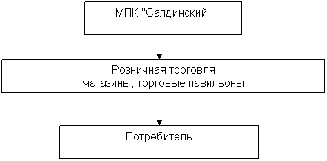 - по числу посредников: имея большое число посредников, и приследуя цель – расширение сбыта, приближения товара к потребителю МПК "Салдинский" имеет вид сбыта интенсивный, схема сбыта рисунок № 13.