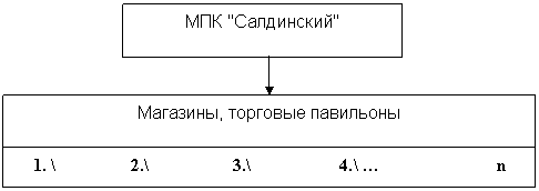 - по организации системы сбыта: т.к. МПК "Салдинский" использует независимых торговых посредников в канале сбыта, то вид сбыта косвенный, схема сбыта МПК "Салдинский" рисунок № 12.
