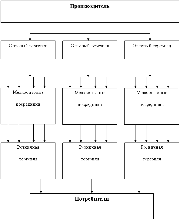 При этом инициатором создания такого структурно – сложного канала распределения может выступать любой уровень – производитель, оптовый или розничный торговец.